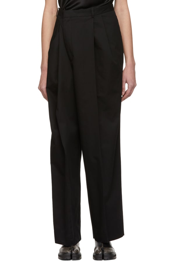 Black Cotton Asymmetric Trousers