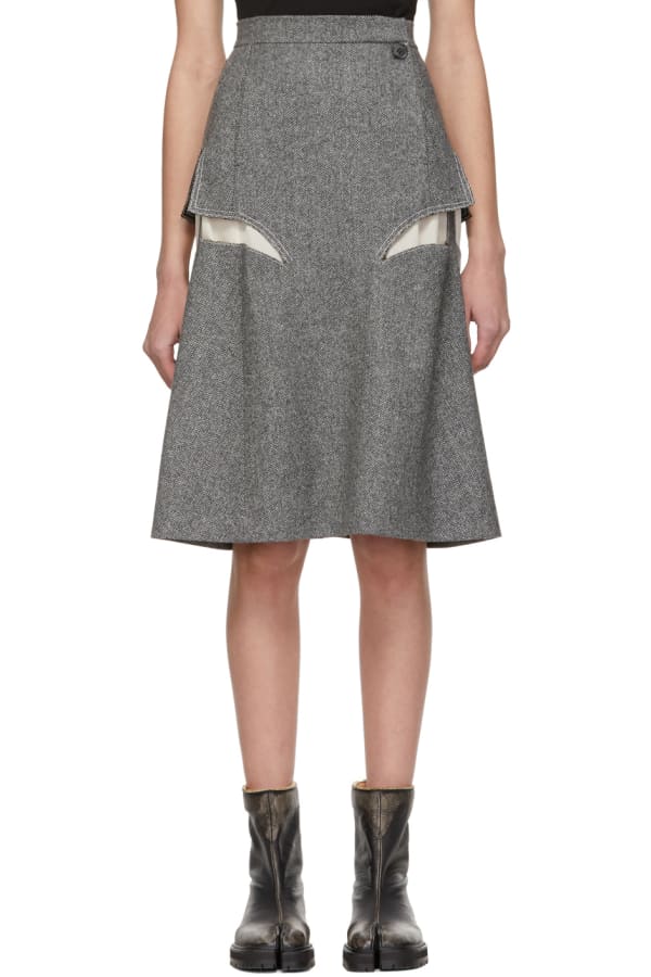 Grey Trompe L'Oeil Stitching Skirt