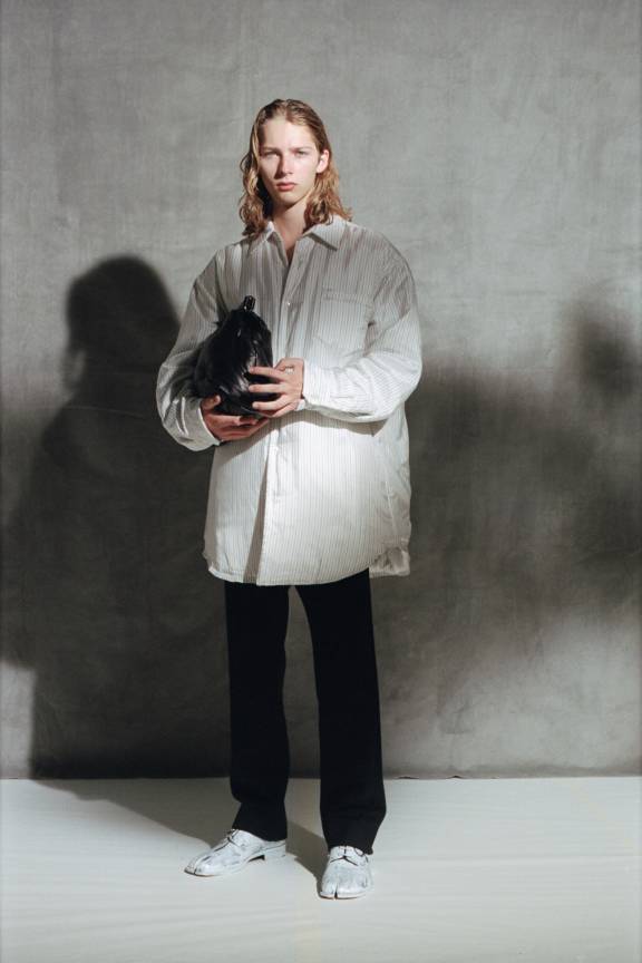 Cited as the driving force behind his latest inspirations for Maison Margiela, the house is no stranger to the ethos of recicla. Deconstructing iconic cuts and silhouettes, Maison Margiela has long transformed all that is uniform into something unparalleled—unpicking the stitches of familiar aesthetic cues as a formal exercise in trompe-l’oeil. By building an identity on absence, Margiela invites speculation. Forget what do I wear, and instead wonder who will I be?