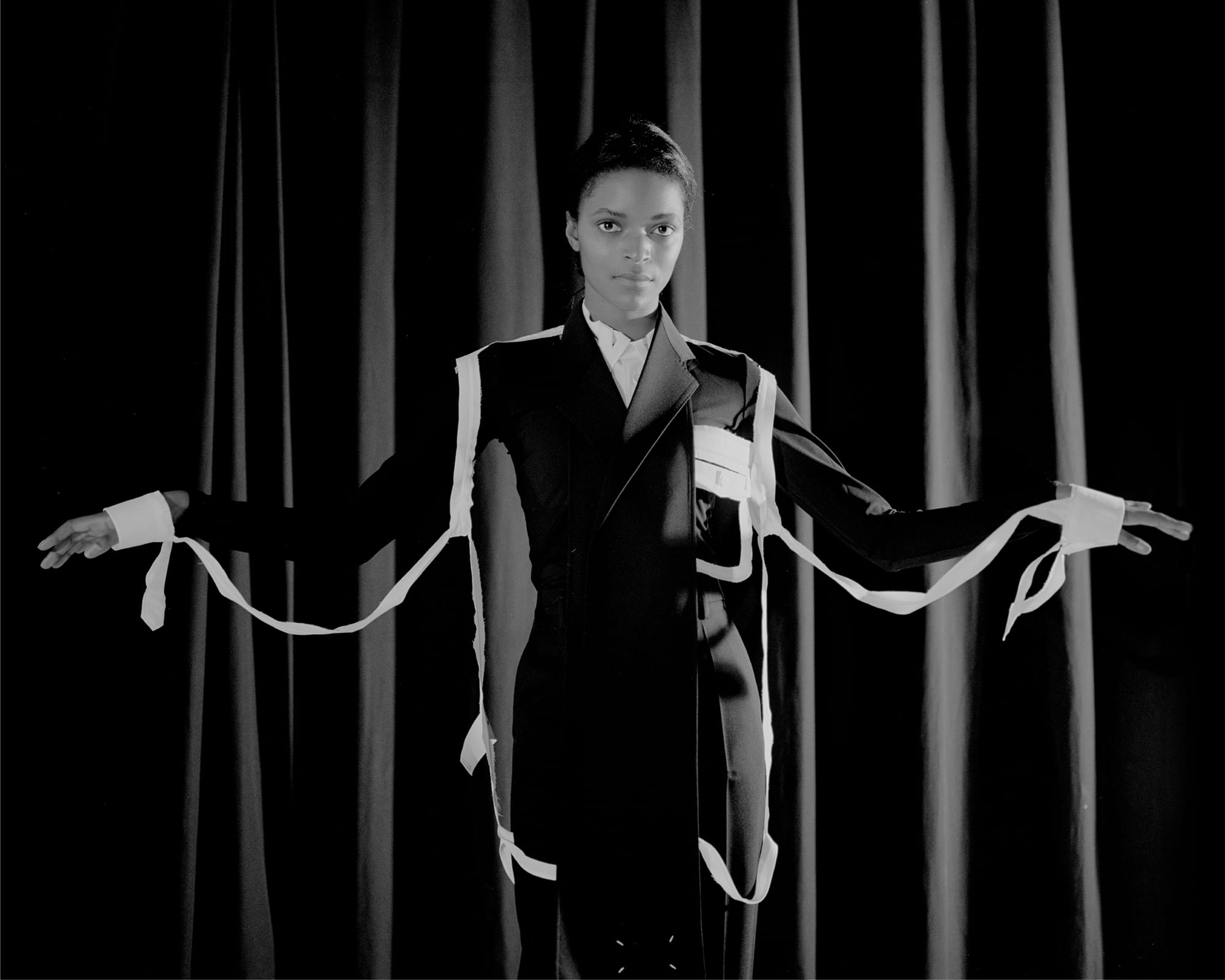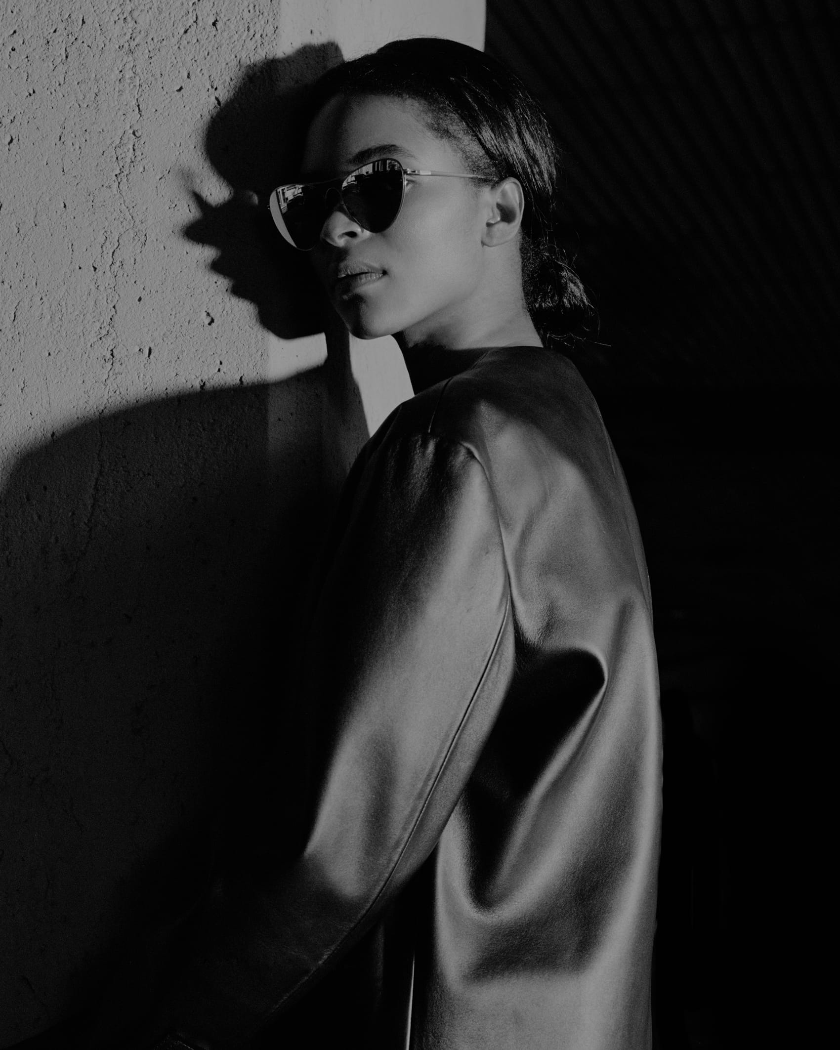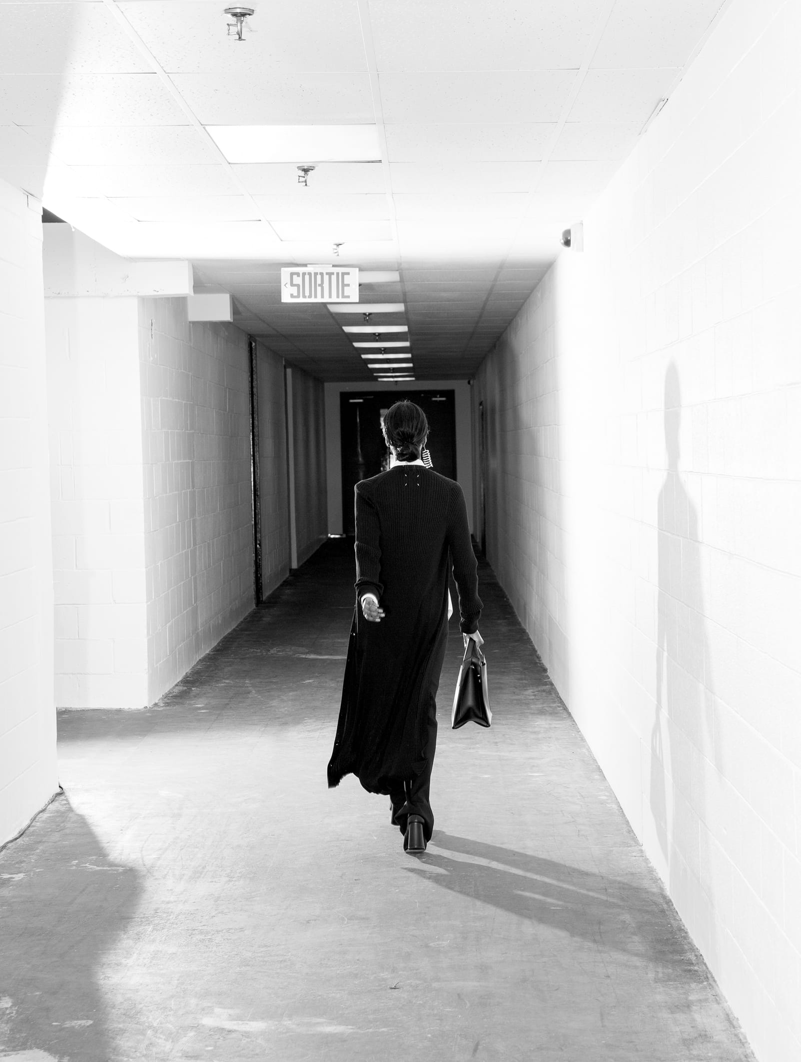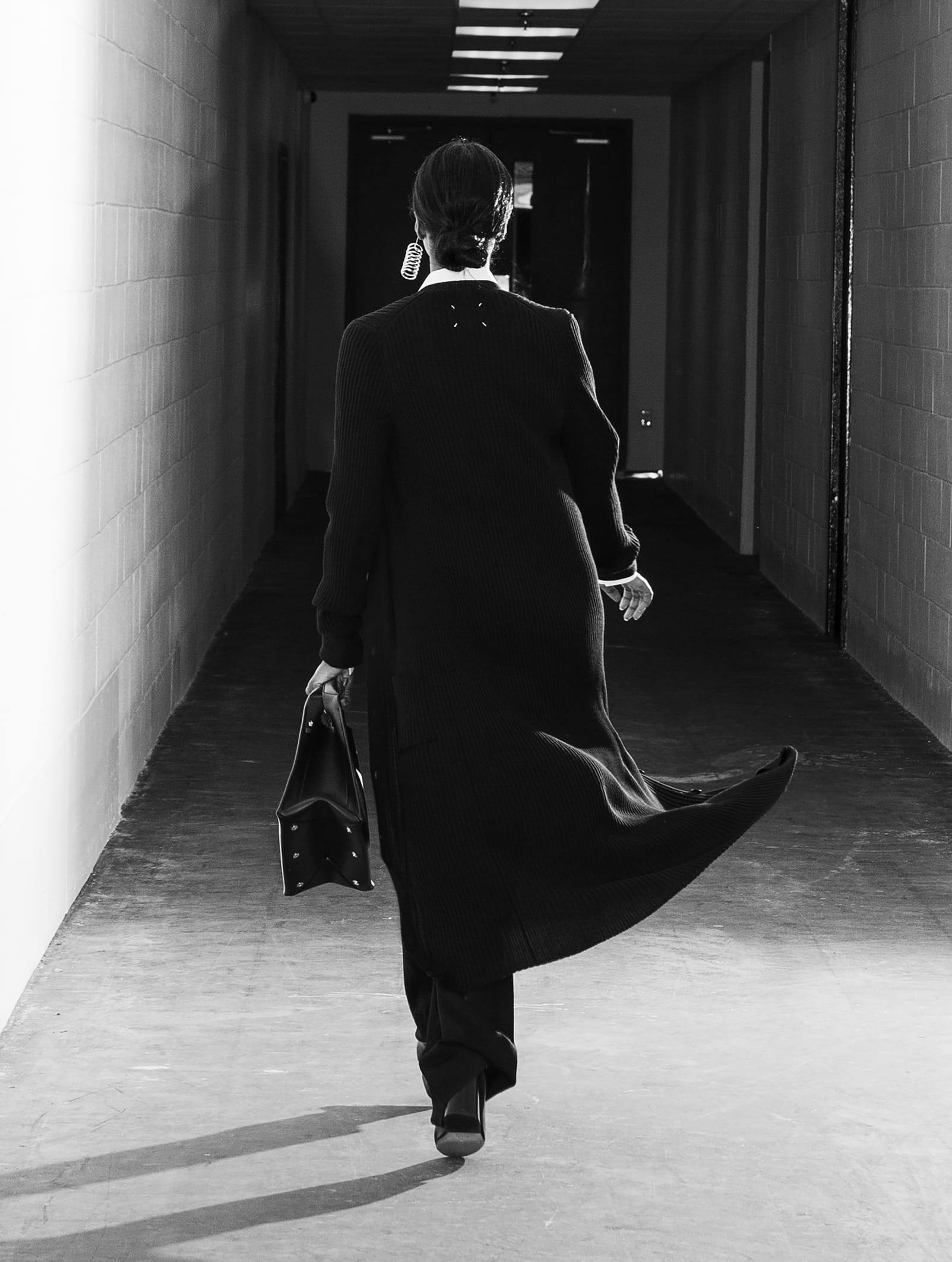 Who better to outfit an ode than Maison Margiela, the brand founded by the notorious man of mystery. A jacket hangs on a clothes-rack, casting the shadow of a body. An impression stands in place of an identity. Obscurity is a character in and of itself. A loose white thread is evidence, an indication of the process—motive that throws convention to the curb.