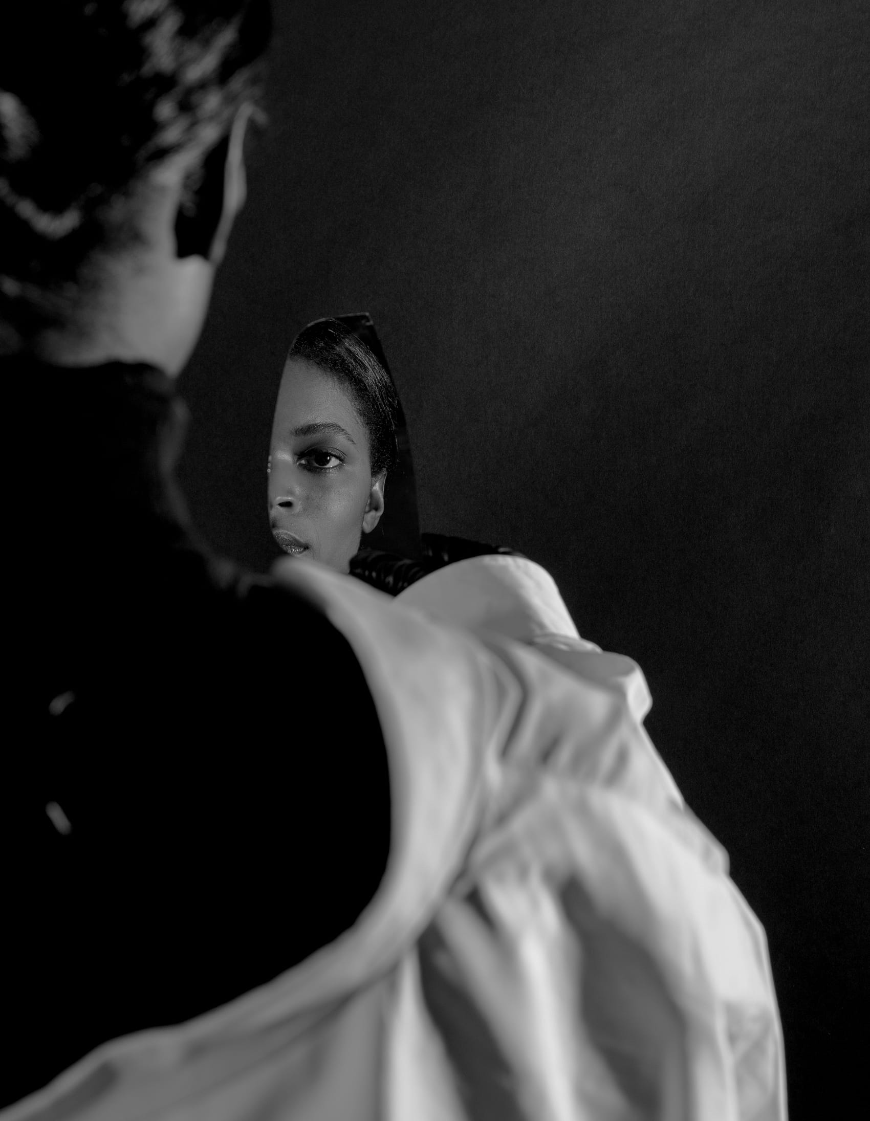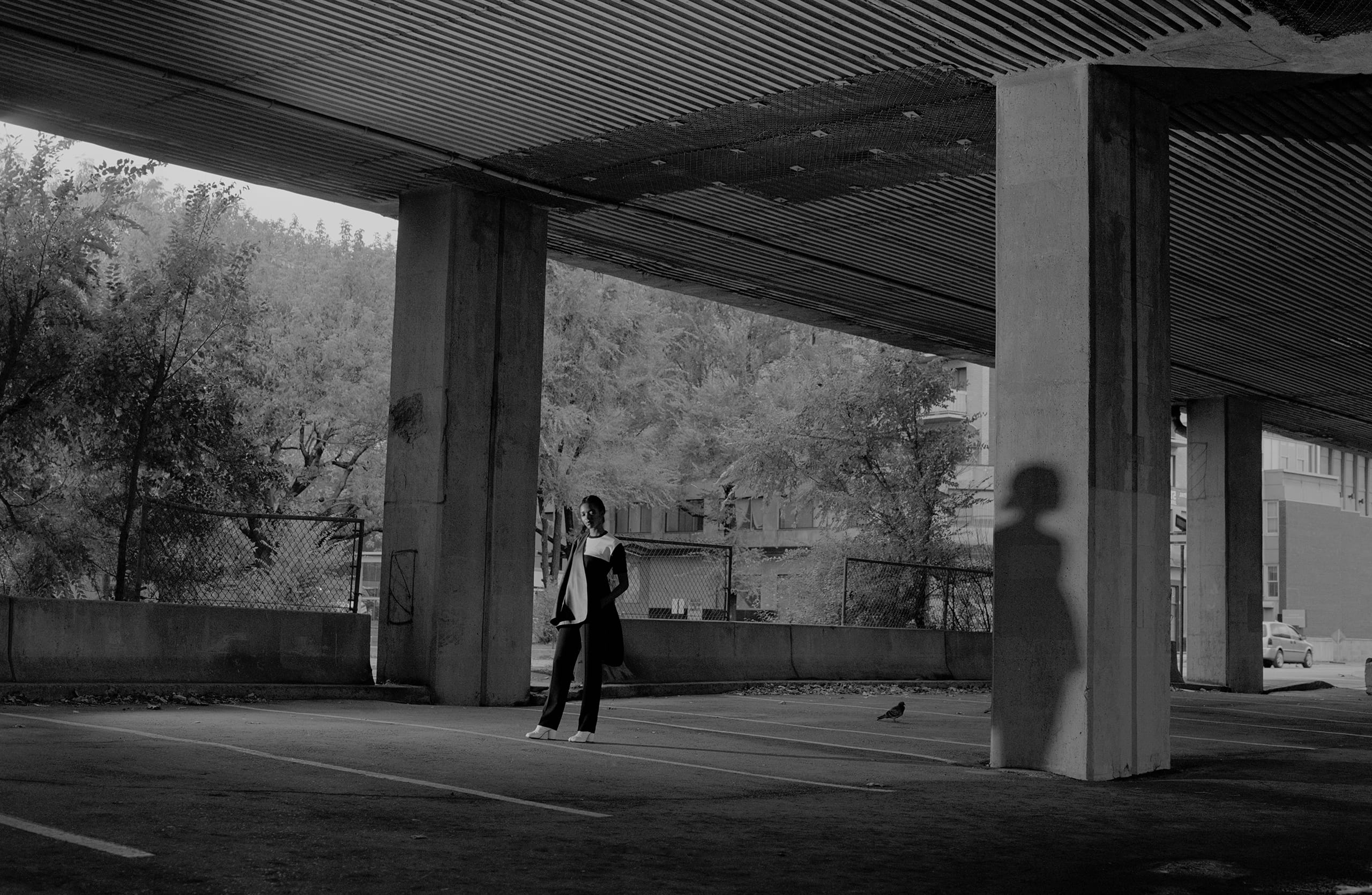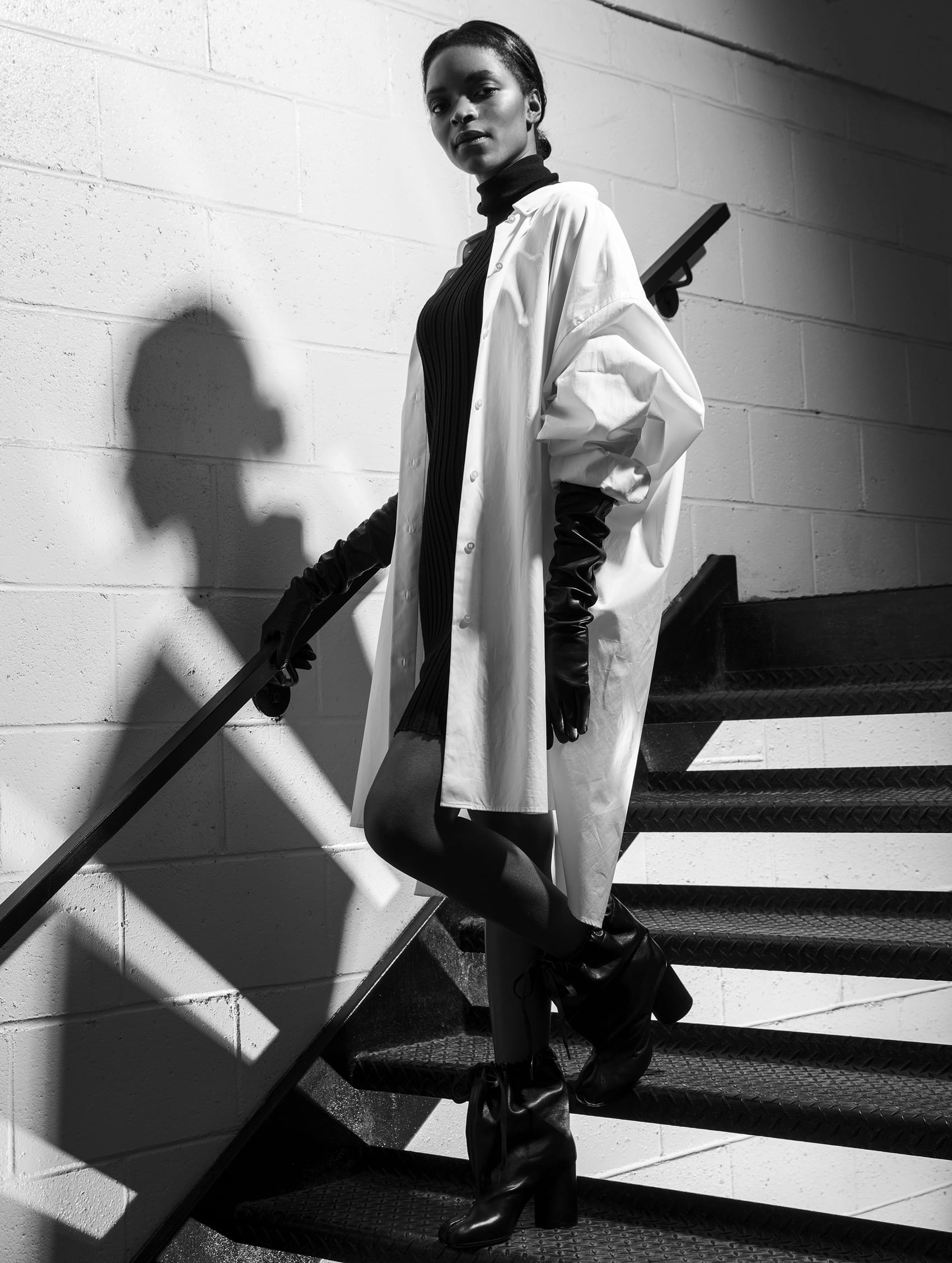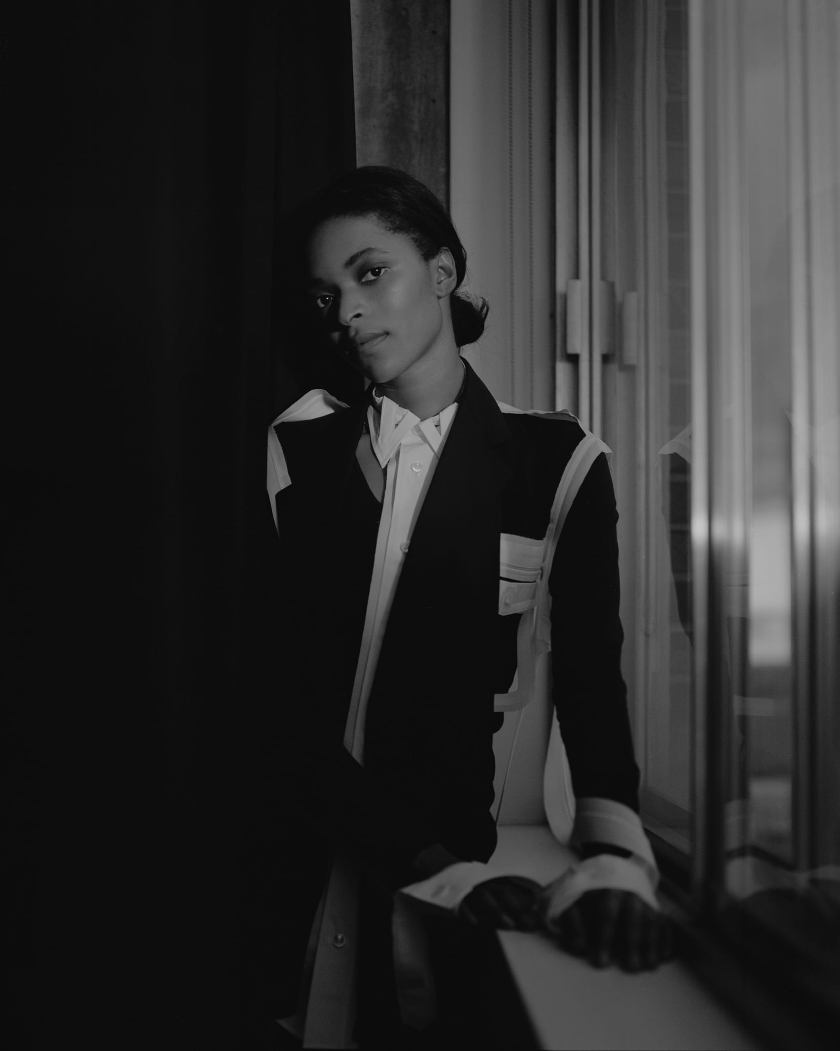 Who better to outfit an ode than Maison Margiela, the brand founded by the notorious man of mystery. A jacket hangs on a clothes-rack, casting the shadow of a body. An impression stands in place of an identity. Obscurity is a character in and of itself. A loose white thread is evidence, an indication of the process—motive that throws convention to the curb.
